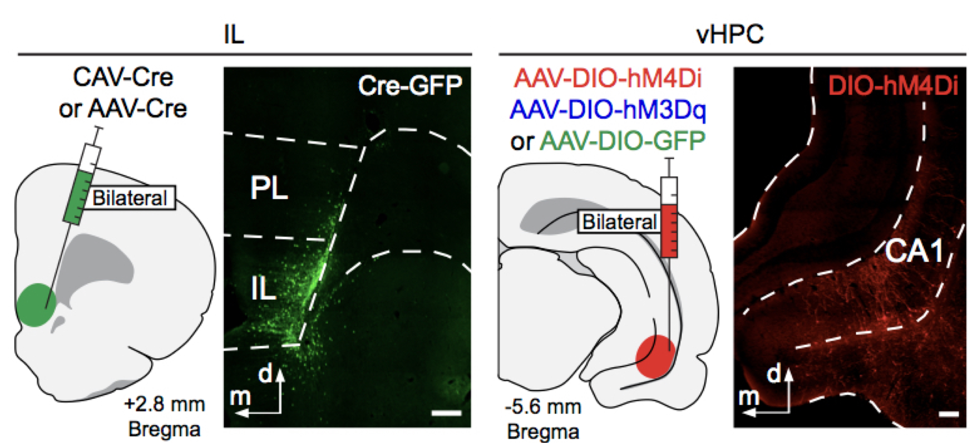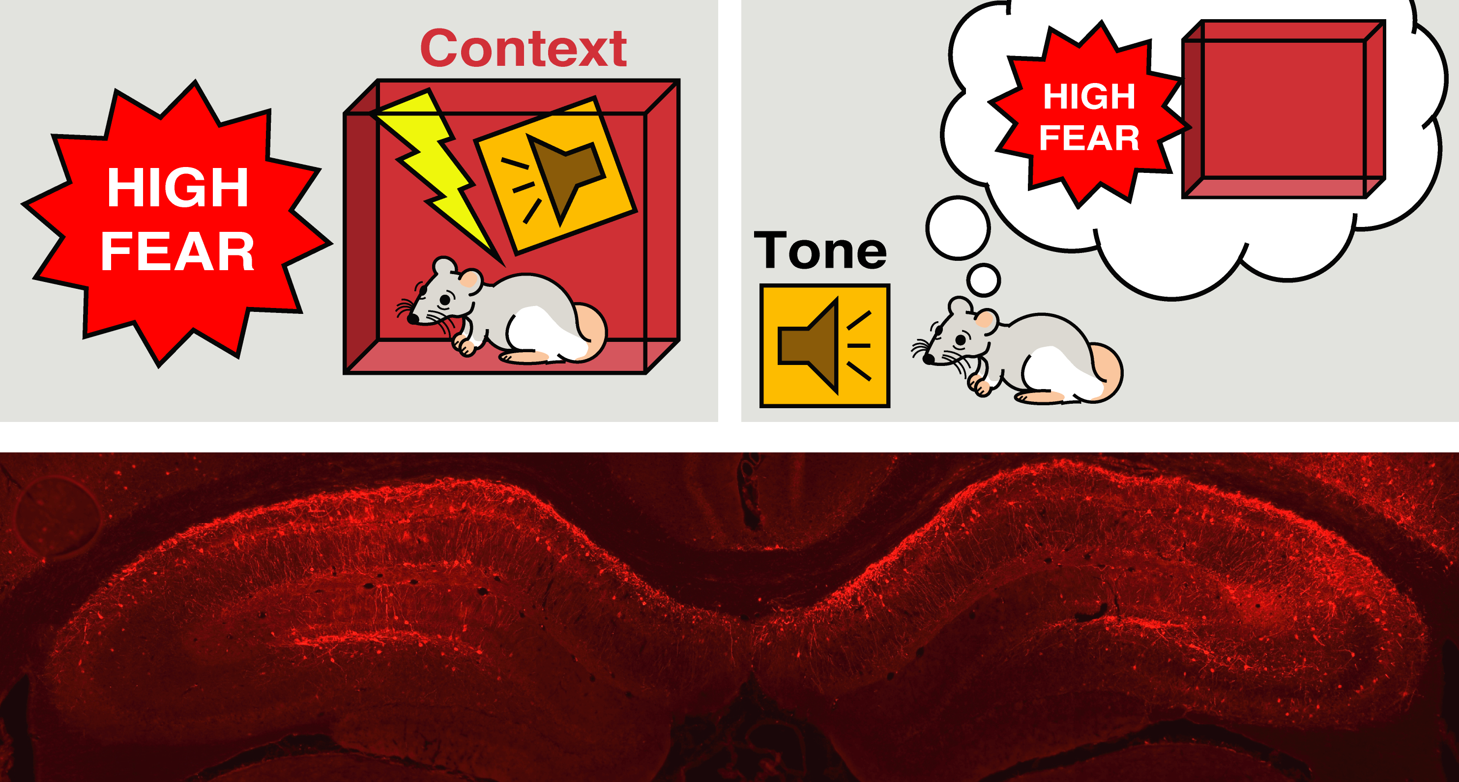 Extinction-based therapies, such as prolonged exposure, are used to reduce fear in patients with fear and anxiety disorders. Unfortunately, the loss of fear that occurs during extinction is often limited to the extinction context and vulnerable to relapse. We are mapping the neural circuits involved in extinction memory and fear relapse. We focus on connections between the hippocampus, amygdala, and prefrontal cortex. A recent focus has been on the role of the nucleus reuniens, which interconnects the hippocampus and medial prefrontal cortex, in extinction acquisition and retrieval. This project is funded by a the NIH (R01MH065961). Recent paper: Marek et al. (2018). Hippocampus-dependent feed-forward inhibition of the prefrontal cortex mediates relapse of extinguished fear. Nat. Neurosci., 21(3):384-392.