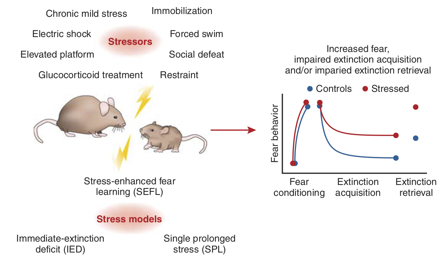 Patients with post-traumatic stress disorder (PTSD) are resistant to extinction. This undermines therapy, because it makes PTSD patients vulnerable to relapse. We have discovered that extinction learning is impaired when it occurs soon after trauma resulting in an “immediate extinction deficit”. We have found that locus coeruleus norepinephrine (LC-NE) released in the amygdala suppresses prefrontal cortical circuits involved in extinction learning. This project is funded by the NIH grant (R01MH117852). Recent paper: Giustino et al. (2020). Locus coeruleus norepinephrine dives stress-induced increases in basolateral amygdala firing and impairs extinction learning. J. Neurosci., 40(4):907-916.